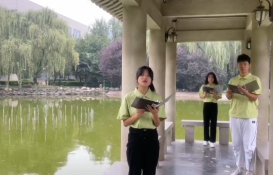 在交通运输及智能装备创新建设平台、逸夫图书馆、校史馆、明远湖等校内地标建筑前,beat365官网20余名教师集体朗诵作品《读中国》,表达了对历久弥新的中华文化的自信和前赴后继的革命先烈的敬仰,他们牢记初心使命,立足岗位实际,以昂扬的姿态在学校“双一流”建设的新征程上奋力谱写我校事业发展的新篇章。