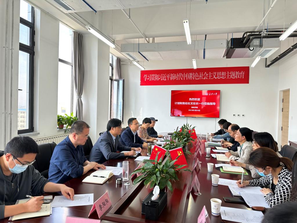 2023年5月24日上午,学校计划财务处处长杜文一行8人来beat365官网开展调研工作。学院党委书记姬国斌、院长陈昊、党委副书记倪凤英、副院长茹锋和各系室负责人参加了座谈,座谈会在学院627会议室举行,由党委书记姬国斌主持。