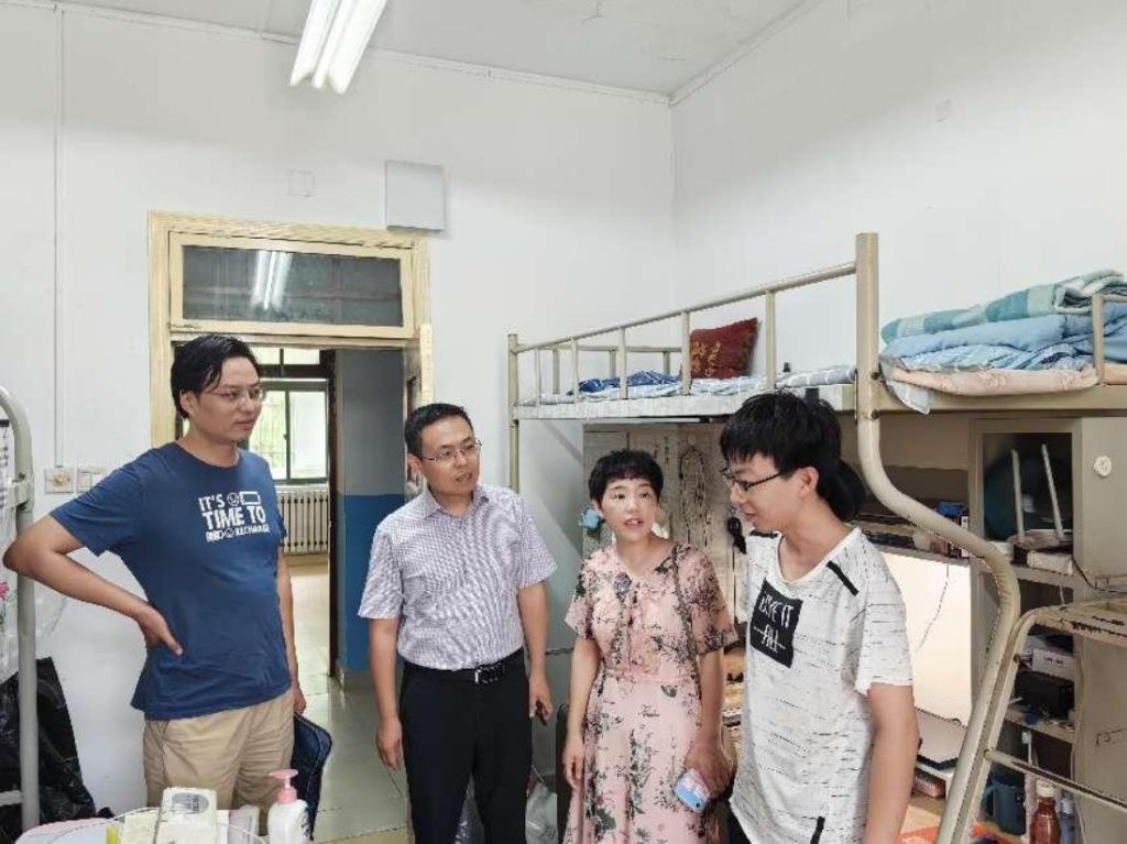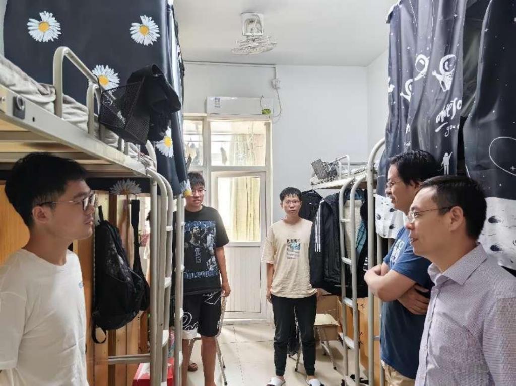 为确保暑期留校学生安全,深入了解和关心beat365官网留校学生的学习与生活状况,7月24日,学院党委书记姬国斌、院长陈昊、副书记倪凤英,学办主任李金檑、研究生辅导员宿雨心深入学生宿舍走访慰问。