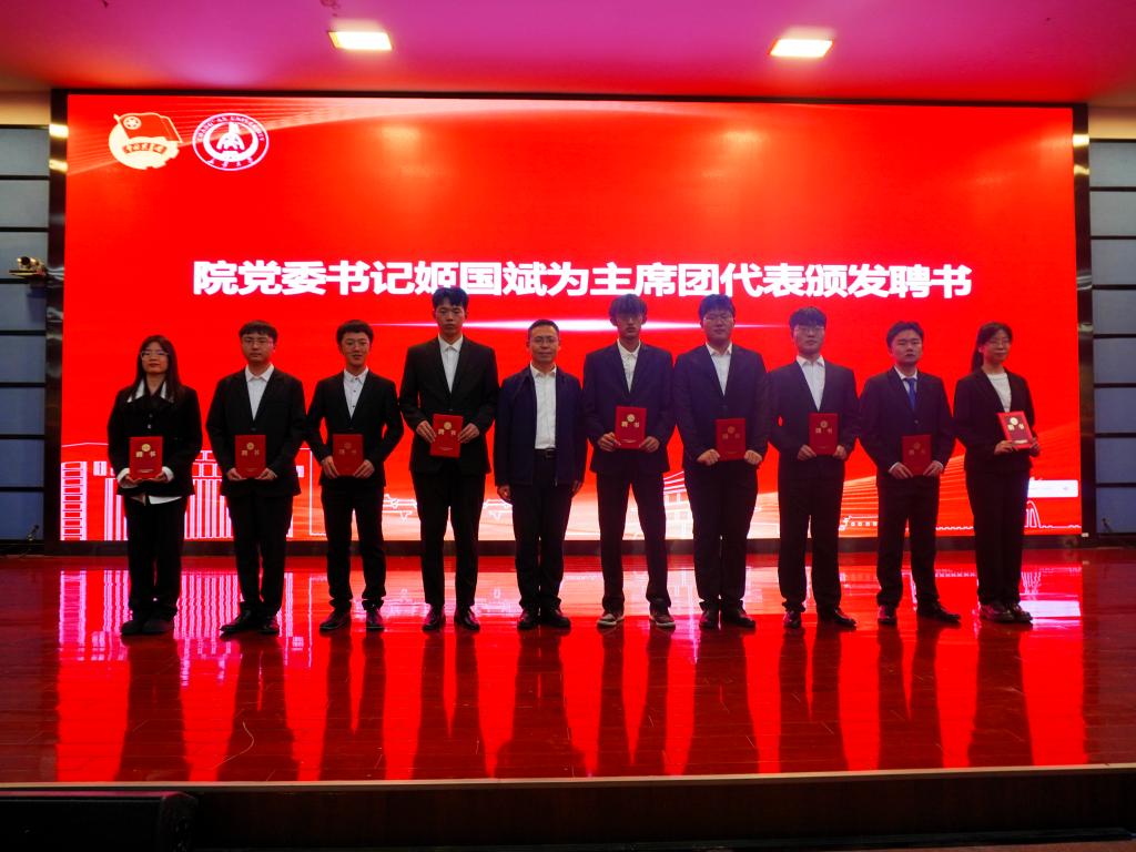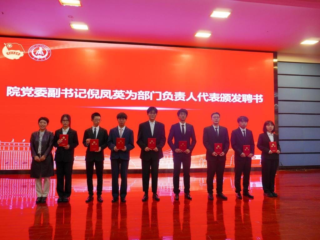 姬国斌代表学院党委对新一届团学组织和学生社团成立表示祝贺,他充分肯定了上一届团学组织和学生社团在服务广大师生、丰富校园文化等方面取得的优良成绩,并对大家的辛苦付出表示问候和感谢。他结合自己的学生组织工作和共青团工作经历,分享了优秀校友的青春奋斗事迹,与同学们交流了关于“为什么要当团学骨干”“怎样当好团学骨干”的思考,鼓励同学们珍惜团学组织和学生社团的宝贵平台与机会,经风雨、见世面、壮筋骨,锤炼品格能力,提升核心价值,切实服务师生,在思想、学习、团结、实践、形象方面做到“五个好”,修好学生组织骨干的“第二学位”。