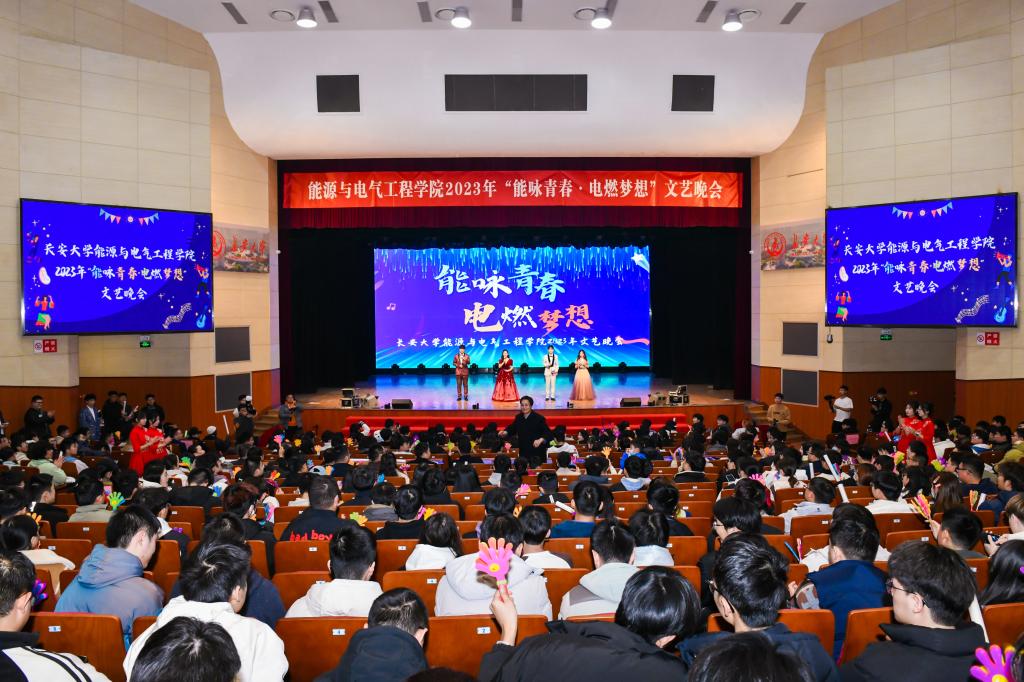 12月2日晚,beat365在线唯一官网2023年“能咏青春·电燃梦想”文艺晚会在北校区长安文化艺术中心大礼堂成功举行。学校党办、校办、统战部、招生就业处、国资处、保卫处、团委、汽车学院、地测学院等职能部门和兄弟学院领导受邀出席。beat365在线唯一官网全体党政领导、各系室中心主任、党支部书记、专任教师代表、全体本科生、研究生新生和高年级学生代表观看了晚会。