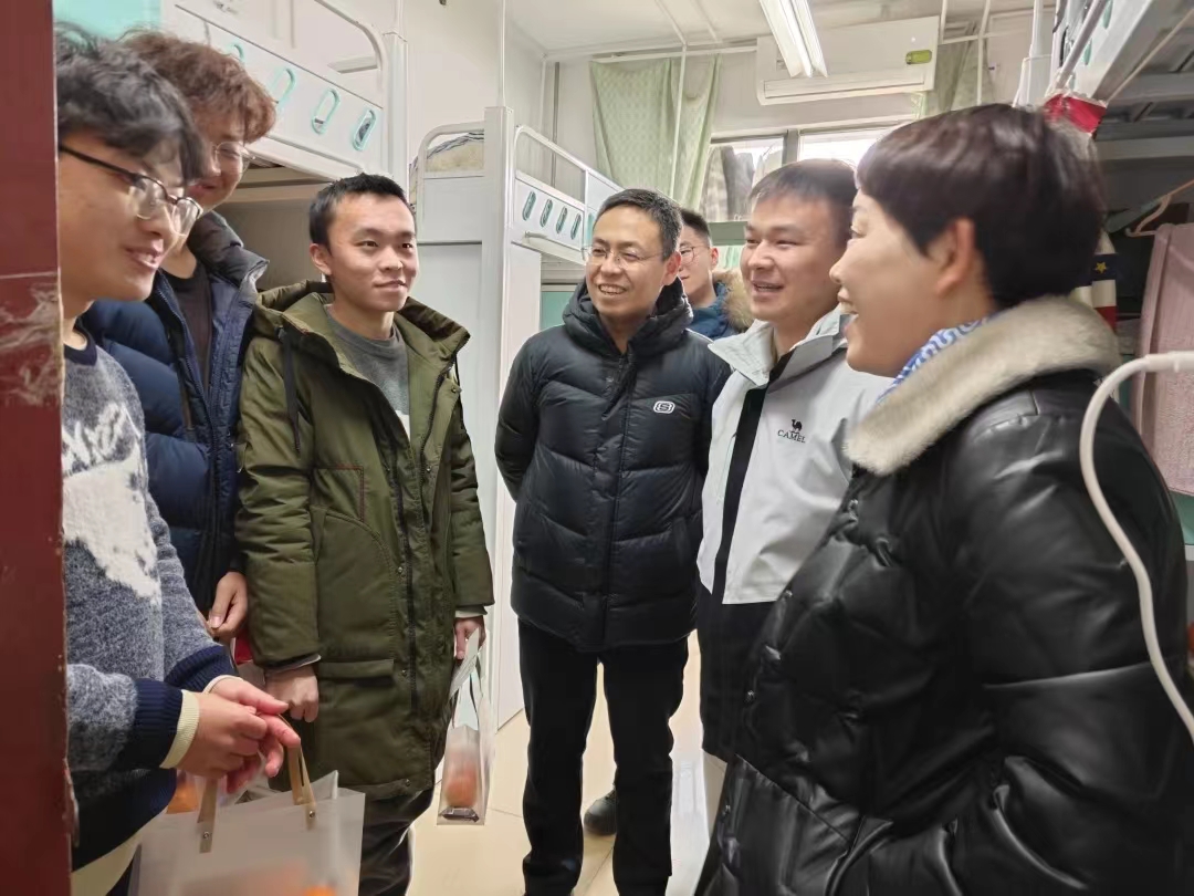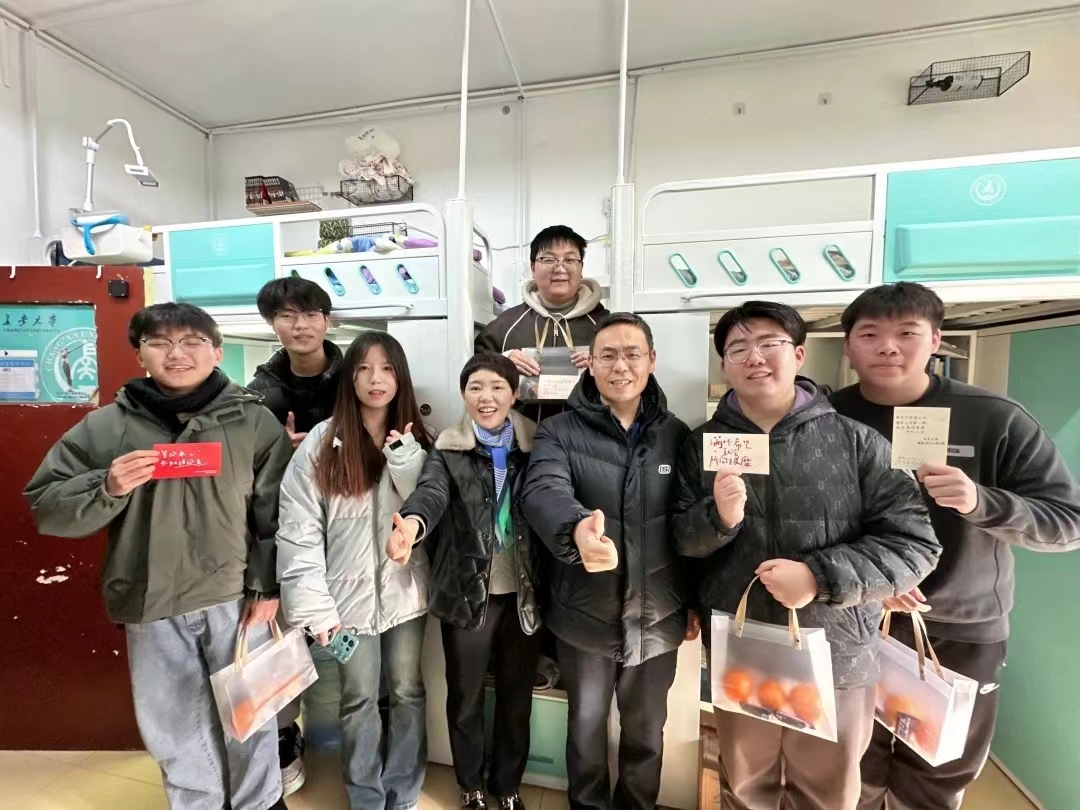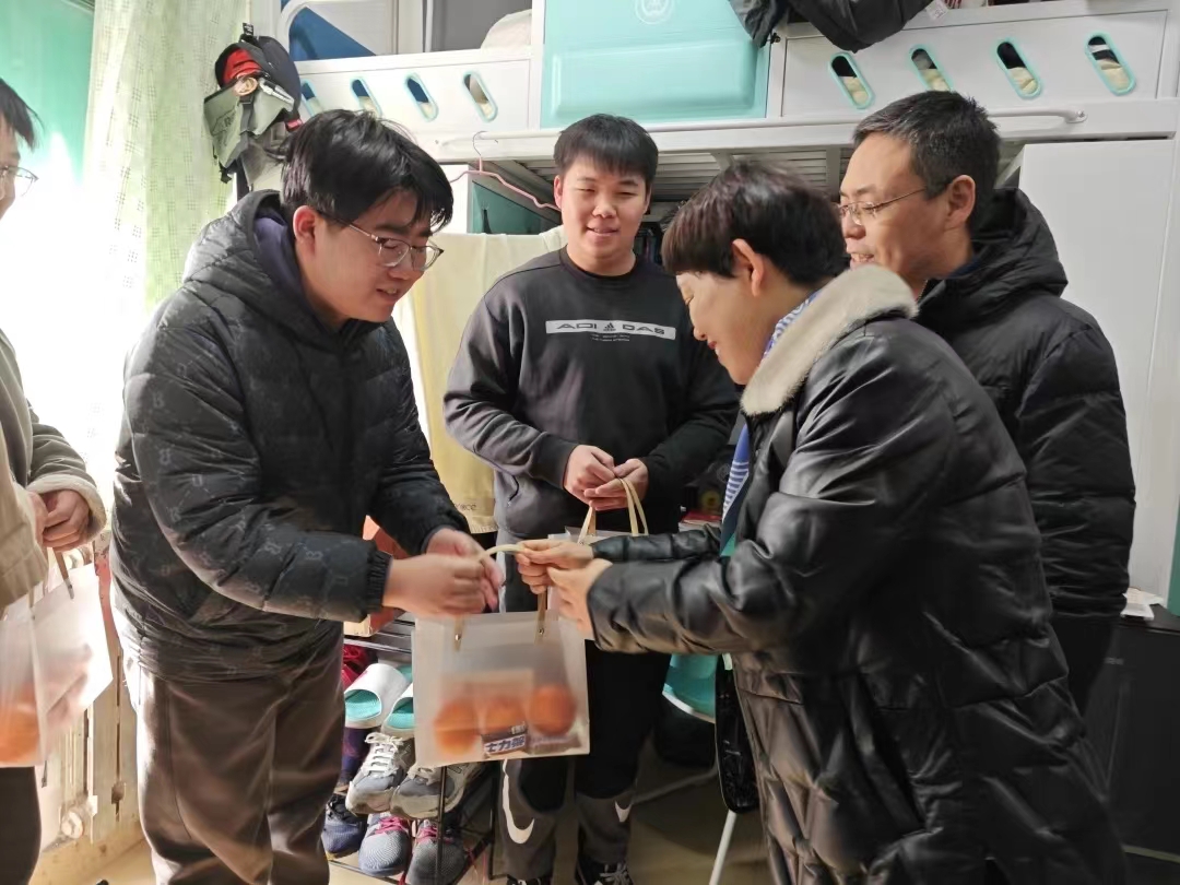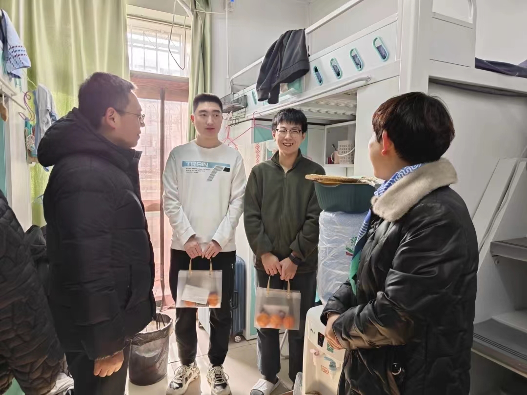 2024年全国硕士研究生招生考试在即,为帮助考生稳定考试心态、增强考试信心、缓解考试压力,12月22日,beat365官网党委书记姬国斌、党委副书记倪凤英、学生工作办公室主任李金檑、毕业班辅导员宿雨心深入学生宿舍,共同为考研学子送上了深切的关怀与温馨的慰问。