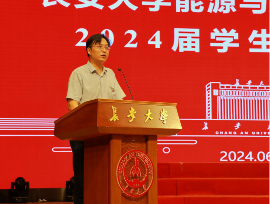 陈昊向2024届毕业生表示最热烈的祝贺,向辛勤付出的老师和家长致以诚挚的敬意和衷心的感谢。陈昊向毕业生提出“五个字”的期望,分别是实干的“干”、赶紧的“赶”、勇敢的“敢”、甘愿的“甘”、标杆的“杆”。他寄语学院广大毕业生要脚踏实地、抢抓机遇、敢想敢为、甘愿吃苦、追求卓越,铭记在长安大学度过的青春时光,开启崭新的人生征程,在祖国的大江南北把“长大能电人”的名片擦得更加闪亮。
