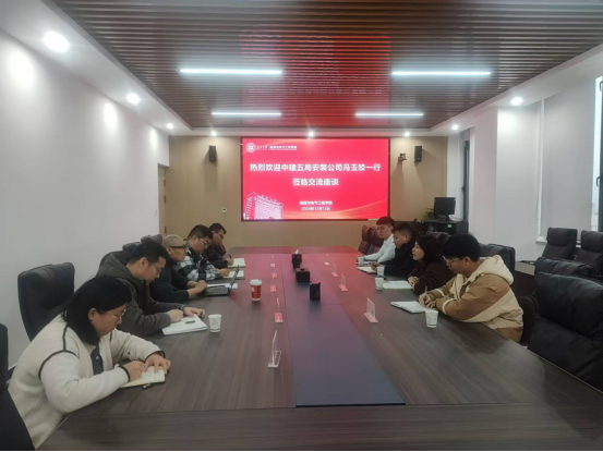 冯玉姣感谢beat365在线唯一官网对中建五局安装公司的信任和支持,并表示之后要多多交流,常来常新。她介绍了安装公司的发展历史、业务板块和企业文化,重点介绍了安装公司的业务布局和发展愿景。她表示,希望以此次来访为契机,进一步密切交流,在前沿技术、就业实习,联合活动等方面加强合作,实现双方互利共赢。