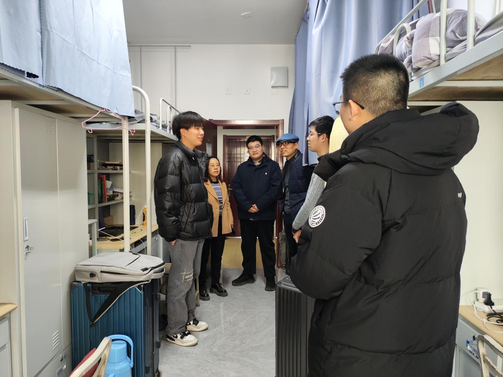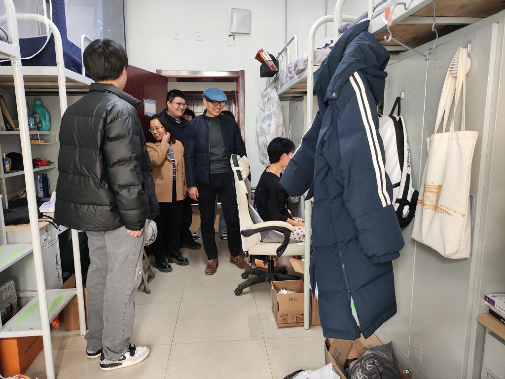 每走进一间宿舍,学院领导老师们都详细询问同学们的假期生活、新学期的准备情况以及目前学习生活中是否存在困难,针对同学们提出的问题进行积极反馈和耐心解答,听取记录学生的意见建议。鼓励同学们在新学期要开好头、起好步,合理制定学习计划,全面提升综合素质,为实现自己的人生价值和职业目标而努力奋斗。