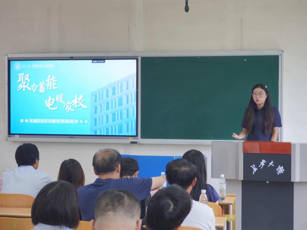 会上,陈昊首先代表学院向2025级能电新生致以热烈祝贺,向各位家长致以诚挚欢迎。陈昊围绕学院概况、师资队伍、专业建设与教学成果、学科研究方向等作了系统介绍,着重介绍了动力工程及工程热物理学科、电气工程学科的研究内容、就业方向与发展潜力,让家长们对孩子未来的学习平台与职业发展路径有了更直观、清晰的认知。