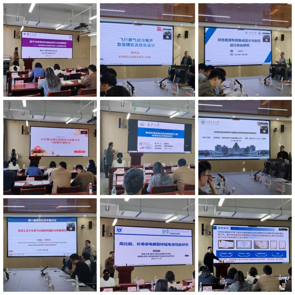 本次论坛分两组进行,来自中国科学院大学、复旦大学、浙江大学、南京大学、中国科学技术大学、西安交通大学、哈尔滨工业大学、天津大学、南京理工大学、南安普顿大学、米兰理工大学、麦克马斯特大学等海内外知名院校的15位青年学者围绕“计算流体力学”“综合能源系统”“光热催化”“电化学储能”“柔性电子器件”“智能运维”等研究方向进行了学术报告,现场师生踊跃提问,交流深入,气氛热烈。