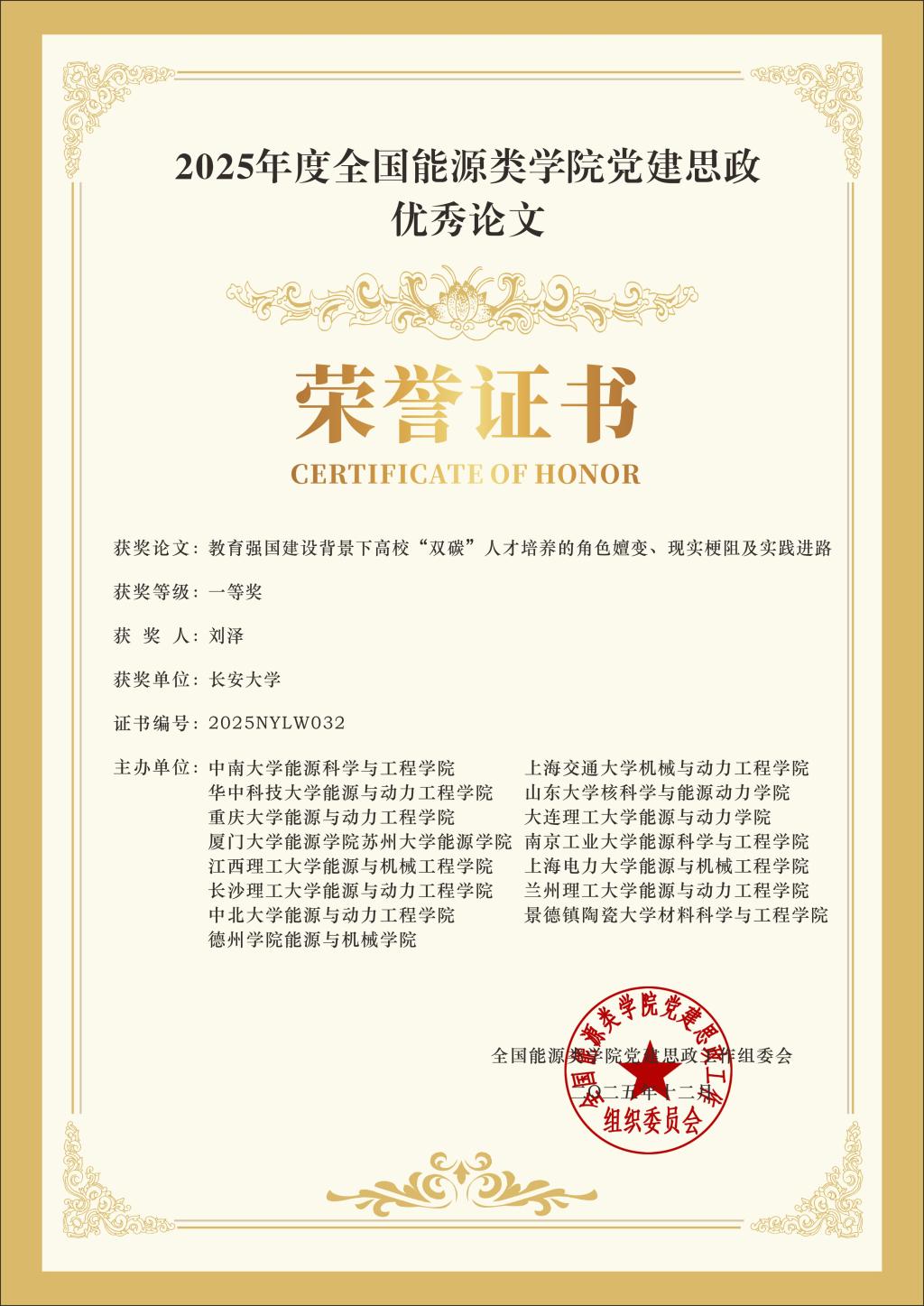 近日,2025年度全国能源类学院党建思政优秀论文评选结果正式揭晓。beat365官网学生工作办公室副主任刘泽撰写的《教育强国建设背景下高校“双碳”人才培养的角色嬗变、现实梗阻及实践进路》一文荣获一等奖。