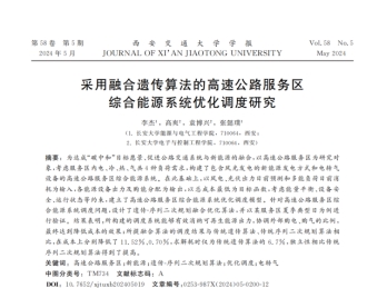 长安大学beat365在线唯一官网李杰副教授以第一作者身份在《西安交通大学学报》上发表了题为《采用融合遗传算法的高速公路服务区综合能源系统优化调度研究》的研究论文,被评为西安交通大学学报》2024年度优秀论文,论文第一署名单位为长安大学beat365在线唯一官网。