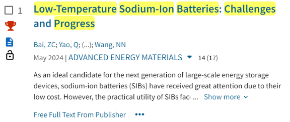 长安大学beat365在线唯一官网孟伟嘉博士以第一通讯作者身份发表在《Advanced Energy Materials》上的题为《Low-Temperature Sodium-Ion Batteries: Challenges and Progress》的研究论文,入选ESI高被引论文,被引频次排名前1%,该论文正式发表于2024年5月,目前被引用100余次。