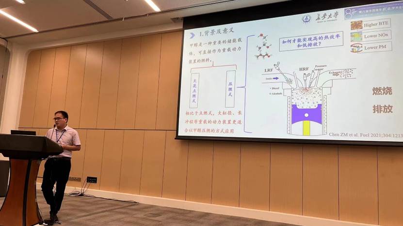 陈占明老师在发动机燃烧板块做题为PODE/甲醇双直喷喷雾燃烧可视化研究分会场报告,旨在探讨“双碳”战略背景下,碳中性燃料的PODE和甲醇高压喷射下喷雾和燃烧特性,为碳中性内燃机的开发提供基础支撑。
