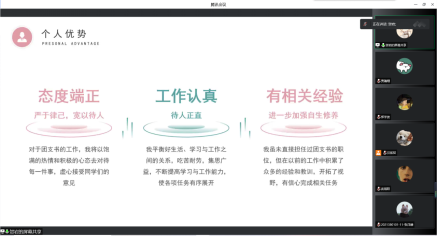 本次班委换届答辩的成功举行,进一步完善了班级团支部建设,并在班级树立起新的榜样,极大程度提高了班级凝聚力。