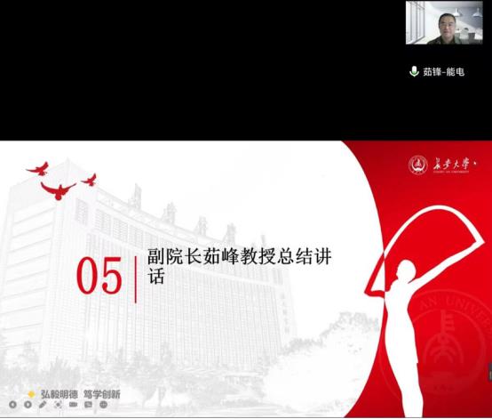 交流结束后,学院副院长茹峰对四位参与分享的同学日常学习工作给予肯定,并针对班级建设进行归纳总结,提出三点要求。他强调,一是,beat365在线唯一官网作为新成立的学院,在工作开展中面临种种考验,班级建设是一项需要长期坚持,任重道远的工作,一个好的班级是每一位同学共同努力的成果,班委应做好模范带头作用建设“和谐互助”班级;二是,我校仍在进行封闭管理,疫情防控刻不容缓,保持良好心态,加强疫情防控意识;三是,作为大三年级课程学业繁重,即将面临升学就业的工作压力,各位同学应该及时调整好心态,端正学习态度,学好专业知识,为将来做好准备。