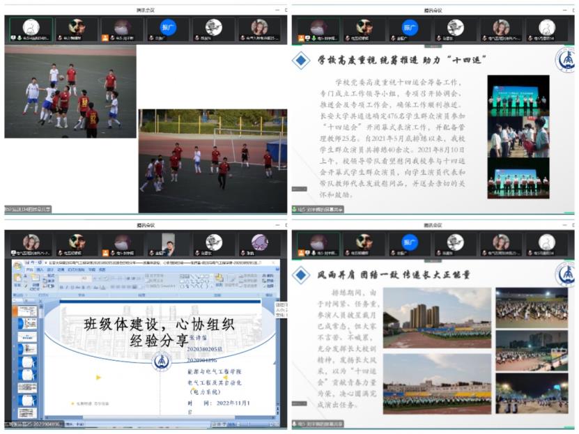 张诗笛、冯晨阳、刘宇辉同学分享生活经验。张诗笛介绍了关于班级建设,社团活动开展的相关工作。在过去的班级中,开展了多项有意义同时富有乐趣的活动,例如模拟法庭,提高同学们的法治意识,传递法律等相关知识。冯晨阳分享了在学院足球的故事,队友的热血与团结,是开赛前的围圈呐喊,是比赛过程中的策应配合,是赛后的庆祝或一起总结失利经验。刘宇辉分享了在去年陕西十四运的开幕式演员经历。开幕式任务重,时间紧,紧张的同时也时刻感受着温暖,学校领导的亲切慰问,鼓阵兄弟们的携手并进,老师后勤工作的及时给力。虽然常常披星戴月,有些劳累,但是这段丰富的经历是一辈子的回忆。
