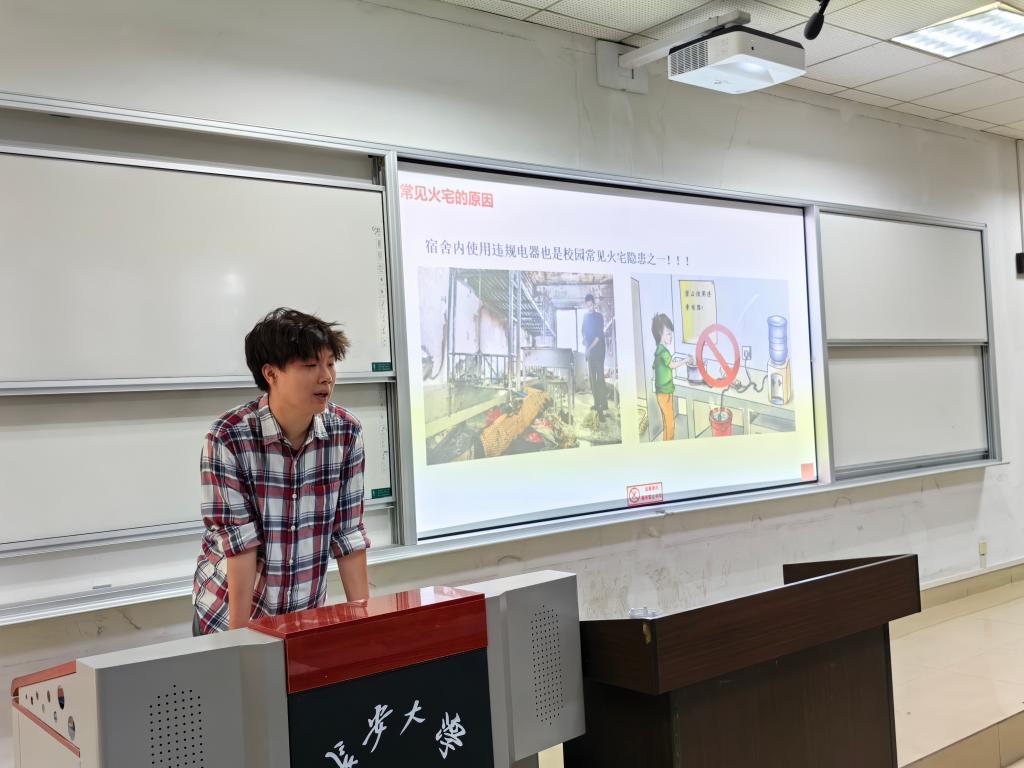 汤陈麟围绕人身安全、防火须知、交通安全、如何防骗、如何防盗六个方面,为同学们进行了安全宣讲教育。汤陈麟通过例举各种典型诈骗案例,结合近期校园发生诈骗案,对诈骗犯作案手法进行分析,对受害者心理深入了解,为学生从各方面防范诈骗提出方法指南。同时组织同学们下载“国家反诈中心APP”,帮助同学们将防诈防骗意识入脑入心。