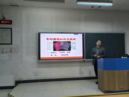 同时文老师还讲述了专利的类型以及专利授权条件。他强调同学们在进行专利撰写的时候要注意专利的实用性、新颖性、创新性。关于如何撰写技术交底书,他从技术领域、背景技术、发明内容、附图说明等方面进行讲解,他希望同学们能够通过参加这次讲座能对专利有更深的了解。
