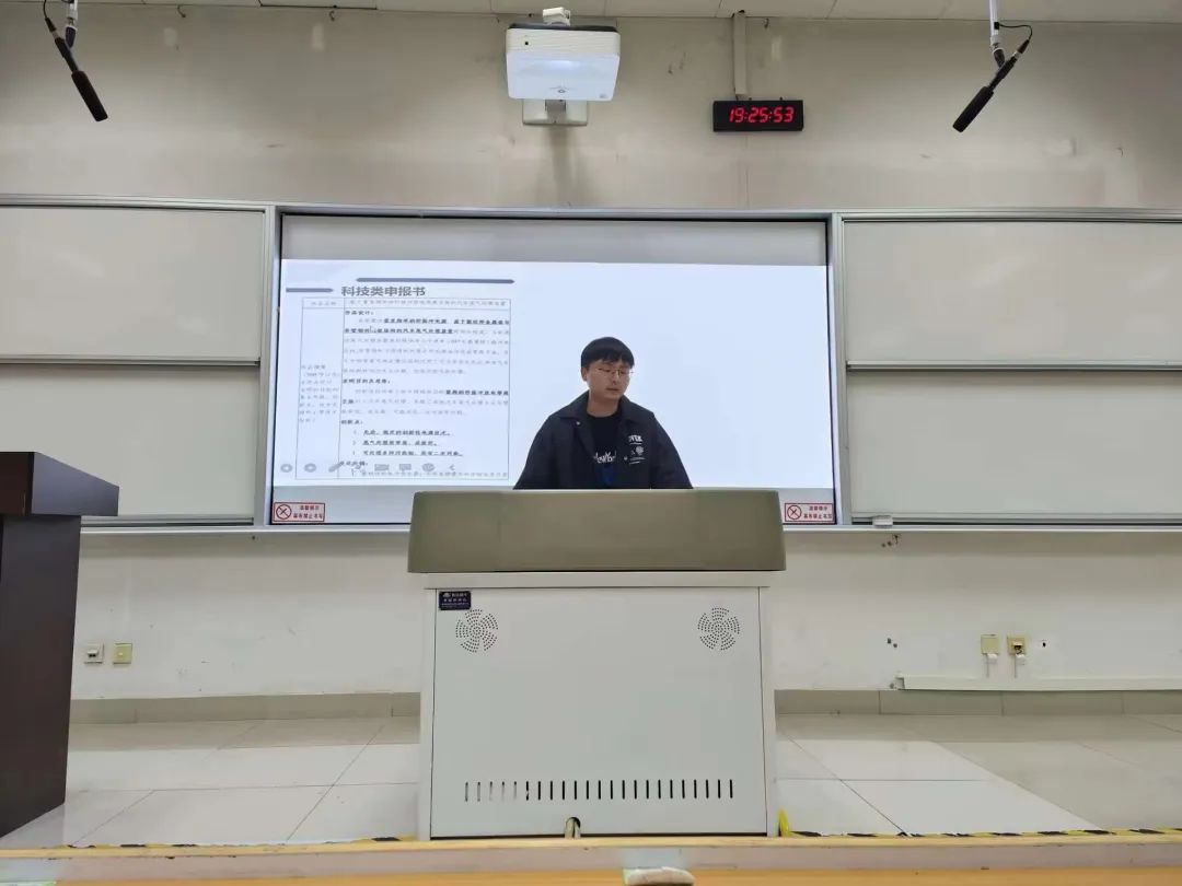 陈文泽介绍了大赛流程和规则等内容,就参赛形式以及汇报内容的相关要求向同学们做了详细地介绍,同时分享了自己的参赛经验和竞赛作品的设计和准备过程。