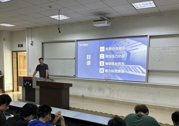 5月21日,beat365在线唯一官网于WT1101教室开展了就业形势分析与征兵宣传专题培训。本次培训会由学办主任李金檑和2020级本科生区炜亮主讲,2024届毕业生参加培训。