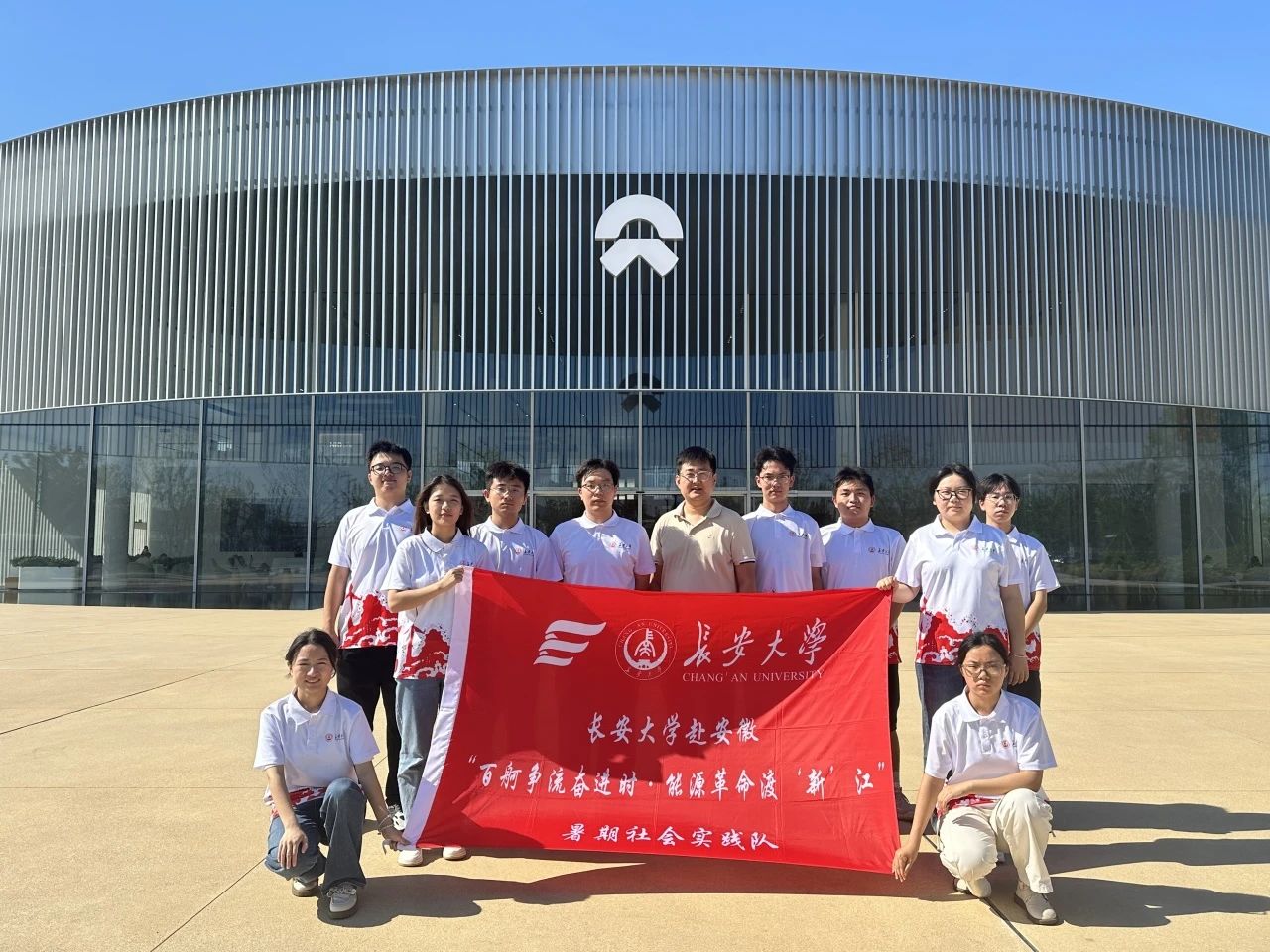 7月22日,长安大学赴安徽“百舸争流奋进时,能源革命渡‘新’江”暑期社会实践队前往安徽省合肥市蔚来汽车第二先进制造基地进行参观学习。