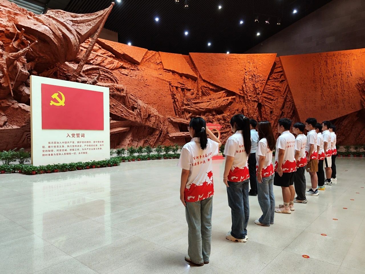 红色基因刻骨铭心,青春力量一脉相承,而渡江战役作为新中国成立的重要一战,那一幅幅惊天动地的画面,一场场惊心动魄的战斗,以及那不畏艰险的渡江精神永远镌刻在中国人的记忆中。实践团队先后前往渡江战役纪念馆、瑶岗村渡江战役总前委旧址、合肥团史展陈中心、中共合肥东乡支部展陈中心,在讲解员的带领下学习革命历史、领悟渡江精神,探寻红色基因、凝聚青春力量。在渡江战役纪念馆,队员们重温入党誓词,为本次实践活动铺上了红色的底色。