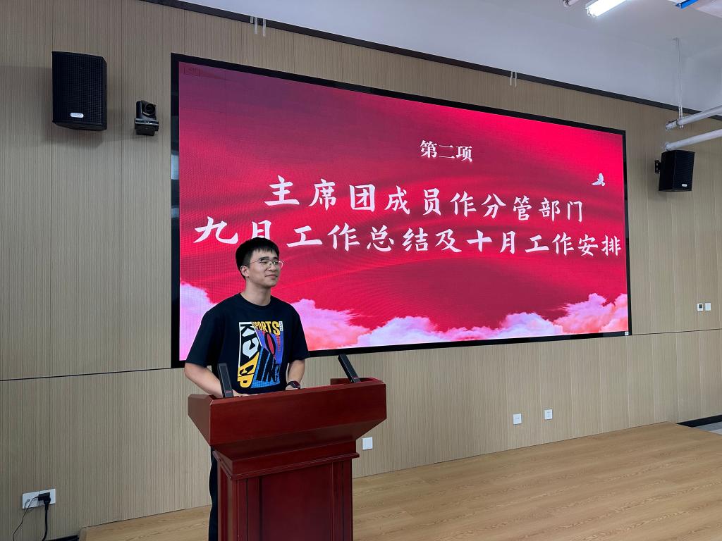 例会伊始谢世京对9月份的工作进行总结。她对研究生会各部门在过去一个月中的辛勤付出表示了肯定,同时指出了在活动宣传、月报编写等方面存在的问题,要求各部门负责人落实解决。随后对10月份的工作计划进行了详细安排。