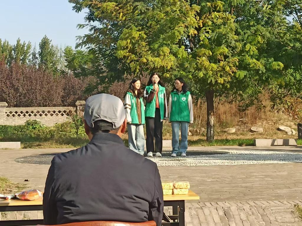 当日早晨,志愿者提前到达现场,帮助工作人员清理院子里的垃圾,让老人的居住环境更加整洁卫生。9:00,活动正式开始,由孙宜强担任主持人,向老人们示范养生手指操八段锦,志愿者们协调老人跟做八段锦,完成简单的锻炼。之后,志愿者为老年人表演了准备已久的节目,随着一首首经典老歌欢快奏响,那熟悉的旋律仿佛带着老人们穿越时光,回到了他们的青春岁月。志愿者们用饱含深情的歌声,表达着对老人们的敬意和祝福。老人们有的轻轻打着节拍,有的跟着哼唱,脸上洋溢着幸福的笑容,与志愿者们共同度过了一段温馨的时光。