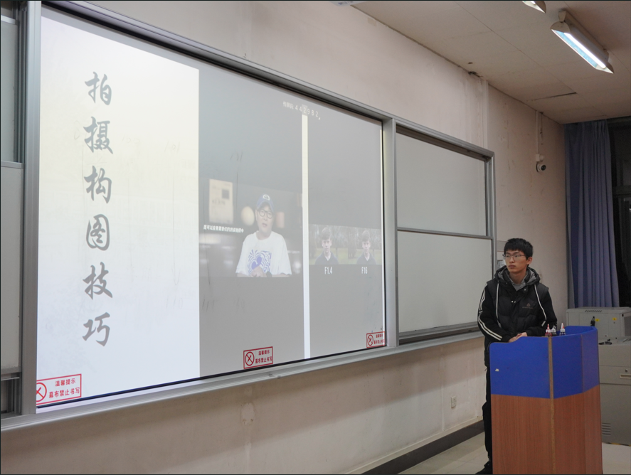 刘毅同学从前期策划、活动拍摄、视频剪辑三个部分由浅入深地进行讲解。在前期策划阶段,他强调工作首先要紧密围绕视频制作的目的和宣传长安大学的宗旨展开,随后进一步确定内容选题,创立情境撰写脚本。刘毅同学以长安大学的一个宣传视频为例,对脚本要点进行了解析。接下来,他从拍摄的八种构图技巧进行详细介绍,强调需要根据内容进行运镜。最后,就视频剪辑方面,他以pr软件为例,详细介绍过渡剪辑、音频调节的方法。此外,他还分享了一些剪辑过程中的小窍门,如如何利用关键帧实现特效、如何通过色彩校正让画面更具质感等。通过他的讲解,同学们收获匪浅、积极响应,现场活动氛围良好。