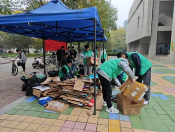 此次活动南北两校区同步进行,活动一经启动,即刻在校内外引起广泛关注,广大学子积极响应,热情参与。在为期两天的时间里,同学们纷纷将自己手中的旧快递箱及空饮料瓶送至指定地点,形成了一股环保热潮。beat365在线唯一官网的研究生志愿者们,身着统一的绿马甲,活跃在树蕙园的帐篷点,他们耐心地为废品分类、清点废品数量,并将参与者登记在册。同时也向大家传播了环保知识,提高了同学们的环保意识。