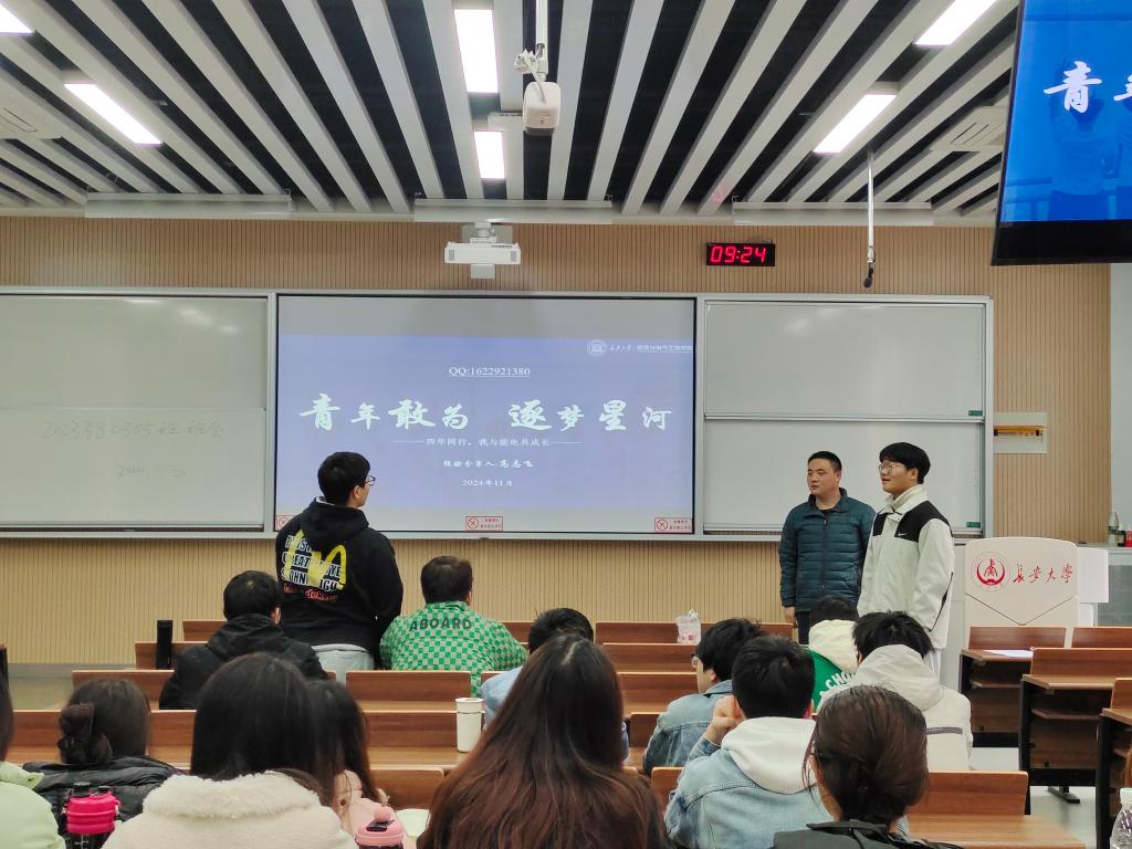 最后,许桂敏老师介绍了自身的学习、工作经历以及对电气工程行业的理解与感悟,并同高志飞学长一道与全班同学进行了互动交流,回答了同学们的问题和疑惑。大家纷纷表示受益匪浅,对自己学习方法与优秀习惯养成、学业与竞赛时间分配以及后续专业方向分流有了更加清晰的认识和规划。