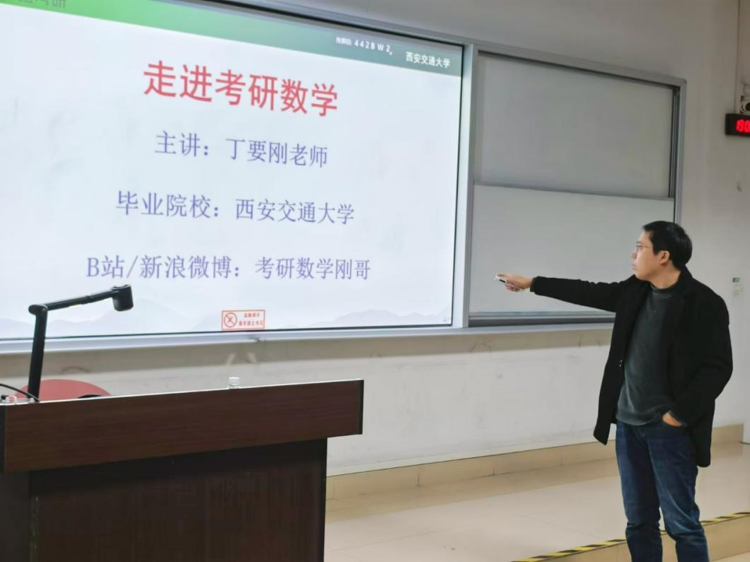 为助力beat365官网26届学子了解数学考研形势,掌握更科学有效的数学学习方法,beat365在线唯一官网于2024年11月21日晚19:00在WT1101教室开展数学考研提升规划讲座,西安交通大学资深高数教师丁要刚老师授课。