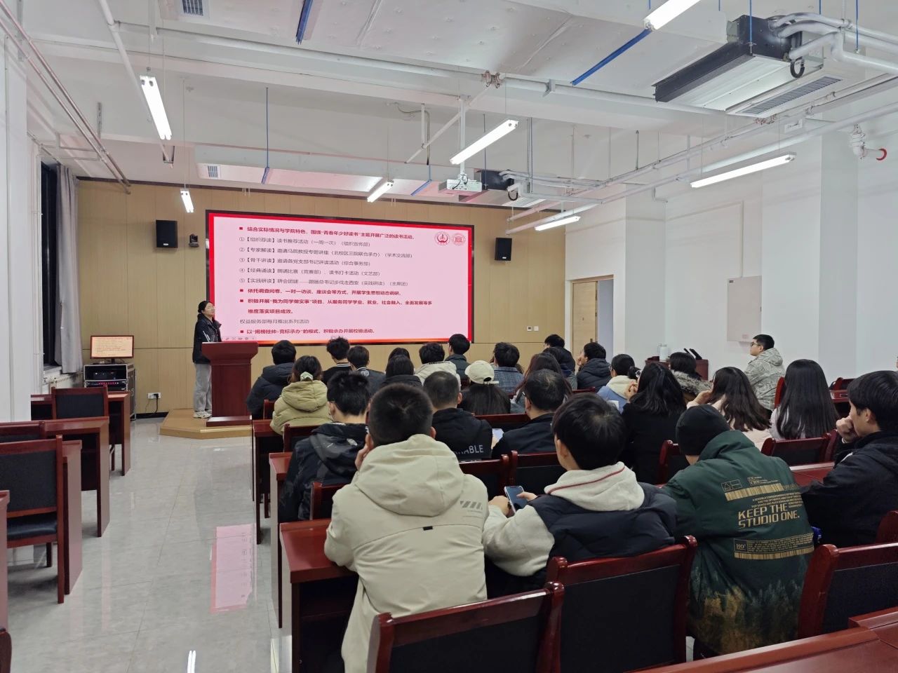 随后,全体参会人员共同观看了《习近平与大学生朋友们》系列视频。视频中习近平总书记与大学生们亲切交流互动的场景,使大家备受鼓舞,深刻感受到总书记对青年一代的殷切期望与深切关怀。这不仅激励着研会成员们在学习与工作中勇挑重担、砥砺前行,更增强了他们为广大同学服务的使命感与自觉性。