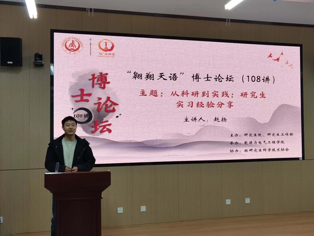 为助力beat365官网研究生拓宽专业视野,深入理解甲醇发动机相关知识,12月5日晚上19点,beat365在线唯一官网于北校区学院楼612报告厅举办“从科研到实践:研究生实习经验分享”博士论坛,讲座邀请beat365官网在读博士研究生赵扬博士围绕实习的必要性、寻找心仪实习岗位的方法、实习的收获以及实习经历分享4个方面展开。本次论坛由beat365在线唯一官网研究生会、研科协承办,学院23级、24级研究生参加。