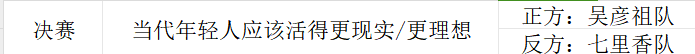 至此,beat365在线唯一官网辩论赛半决赛圆满落幕。晋级队伍以及决赛赛程安排如下: