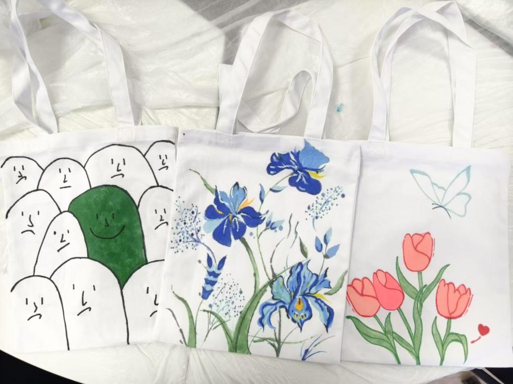 当时针指向下午两点,参与的同学们汇聚一堂,热情满怀,活动正式拉开帷幕。首先,由活动主持人张佳坤上台,阐明本次活动的主题——“热爱环保,绿色未来”。张佳坤鼓励大家秉持自由创作的精神,勇敢地展开想象的翅膀,尽情挥洒色彩,在帆布袋上留下各自的独特印记。这样的时刻,不仅仅是对手艺的挑战,更是心灵与自然之间深切对话的契机。