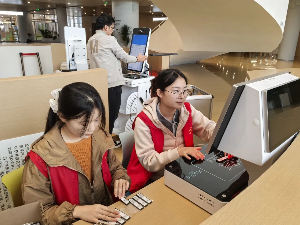活动当天,志愿者们早早抵达图书馆,在工作人员的引导下迅速投入到各项工作中。“书籍导航员”负责图书分类上架,通过核对索书号、归位错位书籍,维护书架秩序;“借还协助者”以细致指导帮助读者解决操作问题,提升借阅体验;“标签入库者”协助完成书柜,精准录入书柜位置、标签编号及图书类别等信息,为管理系统更新提供数据支撑。他们用细致的服务,为图书馆增添了一道温暖的风景线,也让奉献之光在书香中静静流淌。