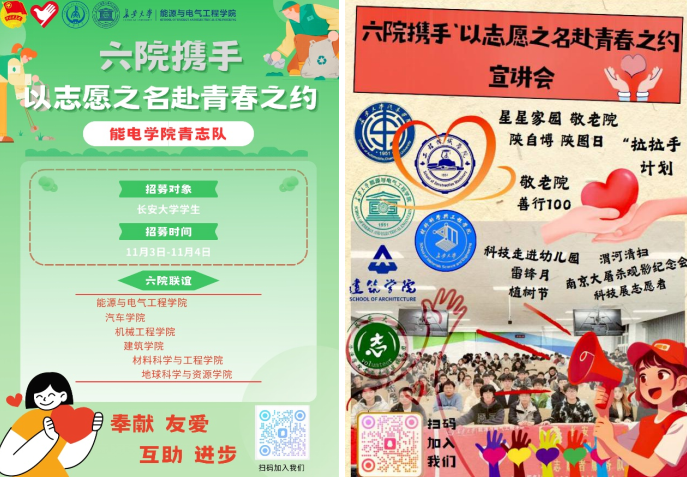 为激发长安学子的青春担当,鼓励大家在服务社会中锤炼自我;同时也为打造更多元、体验更佳的志愿活动。2025年11月3日晚,beat365在线唯一官网青年志愿者服务队与汽车、工程机械、建筑、材料、资源五大学院青志队,联合开展“六院携手‘以志愿之名赴青春之约’志愿者招募宣讲会”。