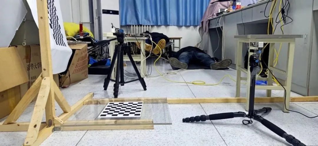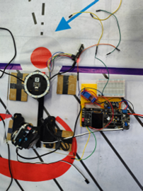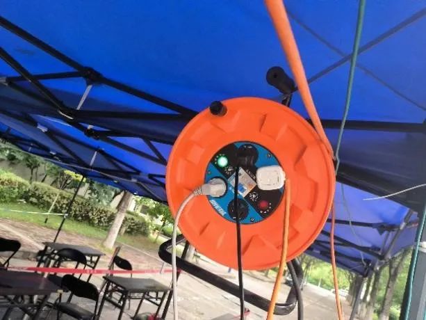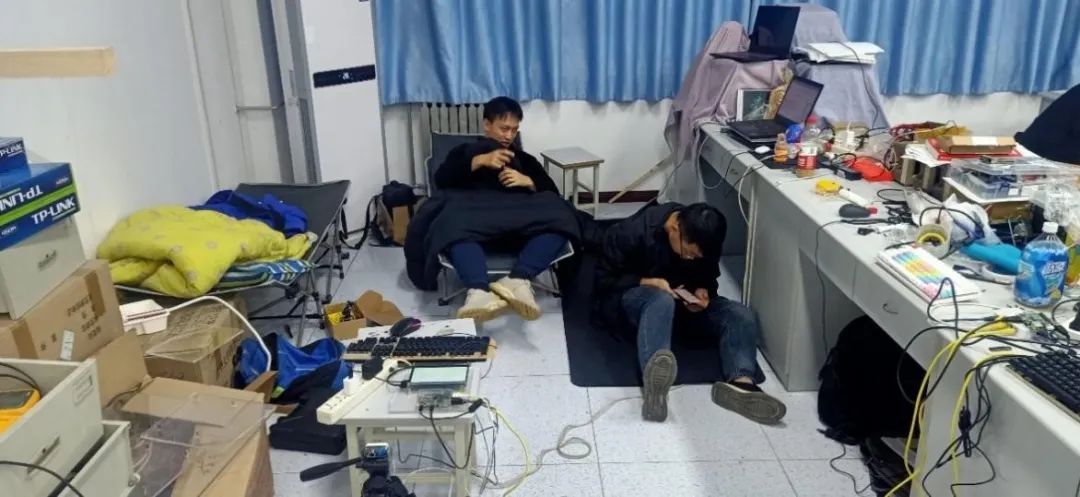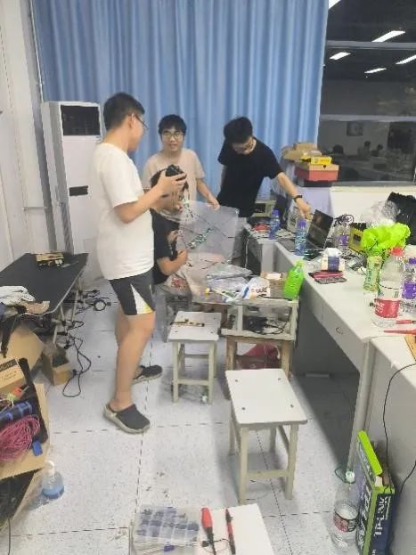 其中我们遭遇了很大的挑战,首先是室外环境条件艰苦,工作效率低下,我和队友在操场上搭建起了一个“实验室”,并想尽各种办法引来电源,这为我们后期的调试带来了极大的便利;其次是出现了很多难以解决的问题,但是通过大量的调试,问题基本上都得到了解决;距离比赛的时间越来越近,天气又与我们开起了玩笑,赛前几天天降暴雨,为了充分利用时间,在下雨时我们只好在室内修改程序、调试硬件,雨停了我们马上下楼清理操场并开始调试。