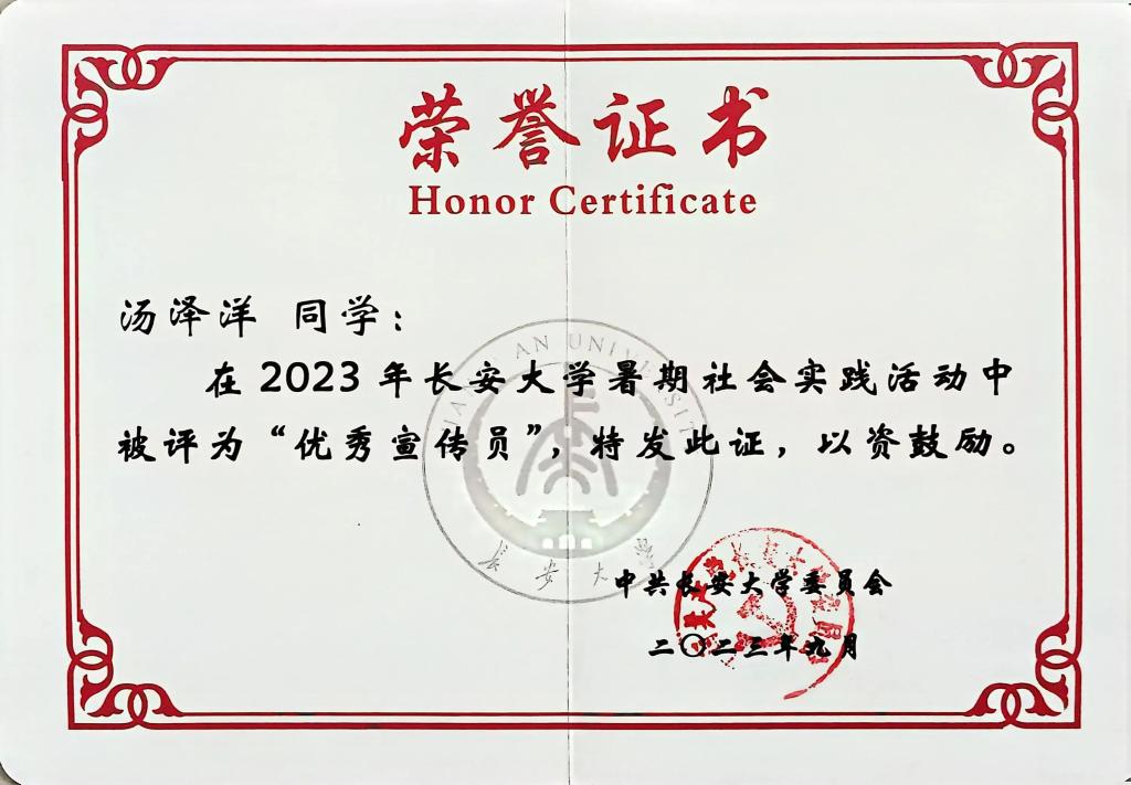 为进一步将所学知识应用到实践当中,汤泽洋利用暑假时间与团队一起走进“风光”无限的河北省张家口市张北县,在担任队伍宣传员的过程中,他认真负责,既追求高效率也追求高质量。采访、交流、调查、总结,产出多篇文稿成功投稿至中国青年网、中国大学生在线等14家媒体,团队获报道37次。