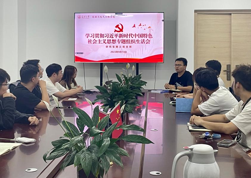 为深入贯彻习近平新时代中国特色社会主义思想,落实主题教育学习要求,持续巩固深化主题教育成果,把习近平新时代中国特色社会主义思想转化为坚定理想、锤炼党性的强大动力,激发出党员同志投身建设社会主义现代化强国的坚定信念。2023年9月13日晚,beat365在线唯一官网研究生第三党支部在学院楼608党团活动室开展“学习贯彻习近平新时代中国特色社会主义思想主题教育”专题组织生活会,会议由研究生第三党支部书记彭阳老师主持,支部全体党员参加。